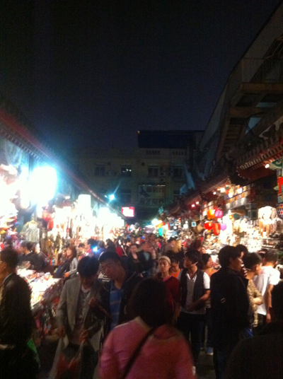 เราออกมาถนนเส้นหลักซึ่งตอนกลางคืนจะปิดถนนเพื่อนให้คนเดินช้อป มีร้านอาหาร บาร์สองข้างทางเต็มไปหมด เดินดูร้านรวงต่างๆเข้าร้านโน่นออกร้านนี่จนเหนื่อยก็เลยตัดสินใจกลับ อีกอย่าง subway เที่ยวสุดท้ายหมดตอนห้าทุ่ม ของเราสองต่อ สี่ทุ่มกว่าๆก็เลยต้องกลับ ไม่อยากเรียกแท็กซี่ สถานี่ subway ก็อยู่ในห้างไกล้ๆถนนคนเดินนั่นแหละ (ใครจะไปถนนคนเดินขึ้นรถมาที่สถานี Wangfujing แล้วออกตรงทางออก A นะครับ ขึ้นบันไดเลื่อนมาหนึ่งชั้น เลี้ยวซ้าย ออกไปนอกตึกแล้วเดินมาทางขวามือก็เจอ Wangfujing Walking street แล้วครับ )ทีนี่คนเยอะมากจริงๆไม่ว่าเที่ยวไหน อาจจะเพราะค่าโดยสาร 2 หยวนทุกเส้น ทางทุกขบวน ซื้อตั๋วง่ายเดินทางสะดวก เสียอย่างเดียวไม่มีที่ให้นั่ง ฮ่าๆ
