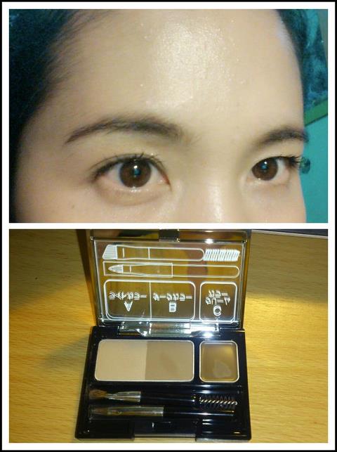 แค่เอาพู่กันหัวเล็กจุ่มสีน้ำตาลเข้มมาวาดเป็นโครง แล้วเอาหัวแปรงอีกอันนึง จุ่มสีน้ำตาลอ่อน(ช่องกลาง)มาปัดๆให้ดูฟุ่งๆ ส่วนสีอ่อนทาช่วงหัวคิ้ว(แต่เราไม่ได้ทา ลืม) แล้วก็แปรงหัวแบบมาสคาร่าปัดขนคิ้วอีกที สรุปแล้วก็มีแค่เขียนๆปัดๆ ออกมาถูกใจเรามากเลยค่ะ ต่อไปนี้จะเลิกเป็นชินจังแล้ว เย้ๆๆ