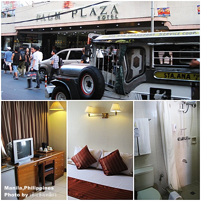 ผมพักที่ Plam Plaza Hotel ย่านมาลาเต้ มีผับ บาร์ และนักท่องเที่ยวอยู่เป็นจำนวนมาก ใกล้กับห้างโรบินสัน หาของกินได้ง่าย เดินไปอีกหน่อยก็เป็นรถไฟฟ้า LRT สถานี Pedro Gil ทำให้เดินทางไปยังที่ต่างๆได้สะดวกสบาย