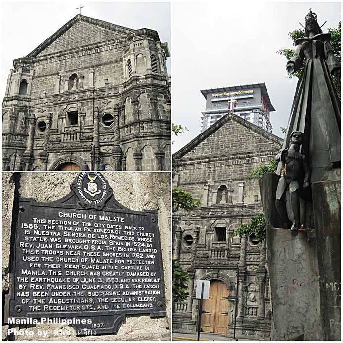 โบสถ์มาลาเต้(Malate Church) แห่งนี้สร้างขึ้นในปีค.ศ. 1588 สร้างขึ้นในยุดอาณานิคมสเปน แต่แล้วก็ถูกทำลายด้วยภัยธรรมชาติแผ่นดินไหวครั้งใหญ่ในปี ค.ศ.1863 จนต้องสร้างใหม่ทั้งหลัง