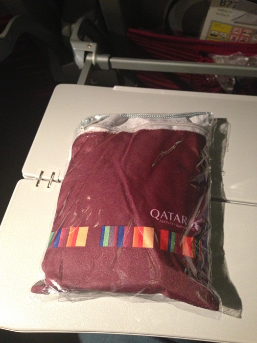 พอเครื่องขึ้นสักพักก็มีแอร์มาแจกถุงใส่ของครับ ข้างในมีผ้าปิดตา แปรงสีฟัน ถุงเท้า ครับ