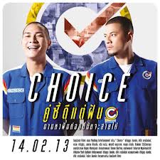Choice คู่ซี้ดีแต่ฝัน วันฉาย 14 กุมภาพันธ์ 2556 จัดจำหน่าย เซย์แคช ฟิลม์ส นำแสดง เวย์ ไทยเทเนี่ยม (ปริญญา อินทชัย), แบงค์ CA$H (ปรีติ บารมีอนันต์), ทราย เจริญปุระ, เต๋า สมชาย, ชะเอม ศิริพิชยา วิสิฐไวท