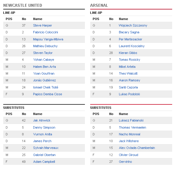 Arsenal starting XI: Szczesny; Sagna, Mertesacker, Koscielny, Gibbs; Arteta, Ramsey, Rosicky; Walcott, Podolski, Cazorla.