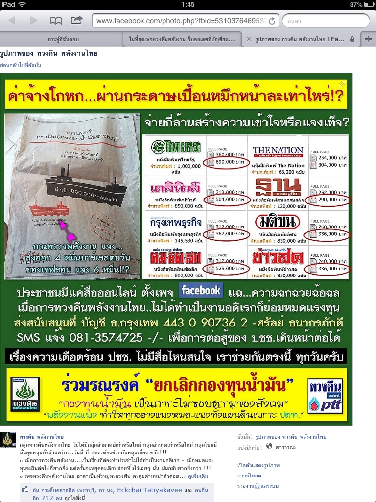 ในที่สุดเพจทวงคืนพลังงาน ก็บอกเลขที่บัญชีธนาคารซะที