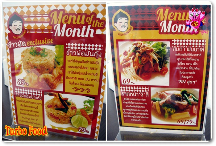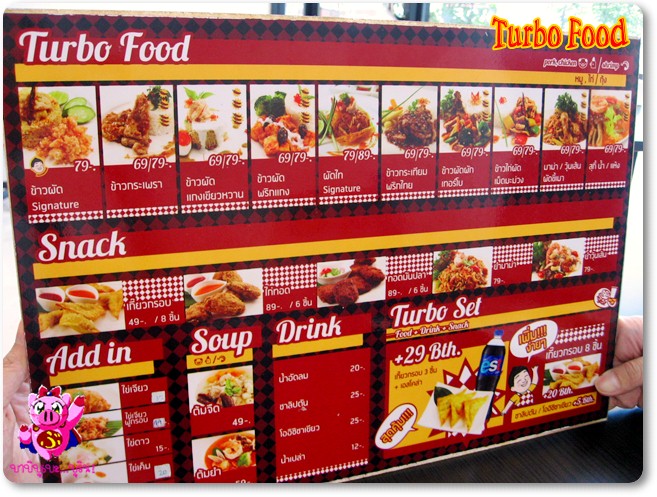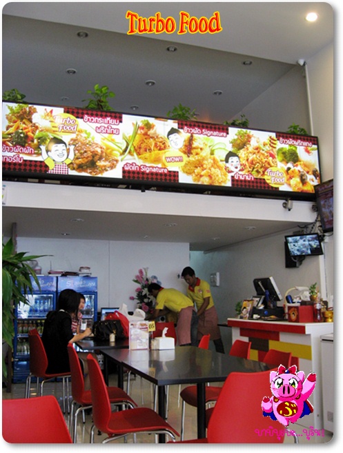 สวัสดีค่ะ วันนี้จะมาแนะนำร้านอาหารตามสั่งย่าน RCA ให้รู้จักกันนะคะ ร้านเทอร์โบฟู้ดพึ่งเปิดได้ไม่นานค่ะประมาณเดือนกว่า ๆ พอดีว่าเจ้าของร้านคือคุณบิ๊ก ติดต่อมาอยากให้มาลองชิมอาหารของทางร้านดู ก็เลยเป็นที่มาของรีวิววันนี้ค่ะ ร้านเทอร์โบฟู้ดอยู่ใน RCA เป็นร้านอาหารจานด่วนสไตล์ไทย ๆ เปิดทุกวัน 11.00 - 22.00 น. เป็นร้านติดแอร์มี 2 ชั้น(ชั้นลอย) จริง ๆ มีโซนที่นั่งด้านนอกร้านด้วย แต่อากาศร้อนอย่างนี้ขอนั่งข้างในดีกว่าเน๊าะ เมนูอาหารของทางร้านค่ะ ชื่อคุ้น ๆ ทั้งนั้นเลยใช่มั้ยคะ ราคาจะอยู่ที่ 69 - 89 บ.เท่านั้นค่ะ (Net แล้วไม่มี++) นอกจากนี้ในทุก ๆ เดือนก็จะมีเมนูพิเศษ ๆ สับเปลี่ยนหมุนเวียนมาให้ได้สั่งกันค่ะ แล้วถ้าเมนูไหนมีลูกค้าถามหากันบ่อย ๆ ก็อาจจะปรับมาเป็นเมนูหลักประจำร้าน