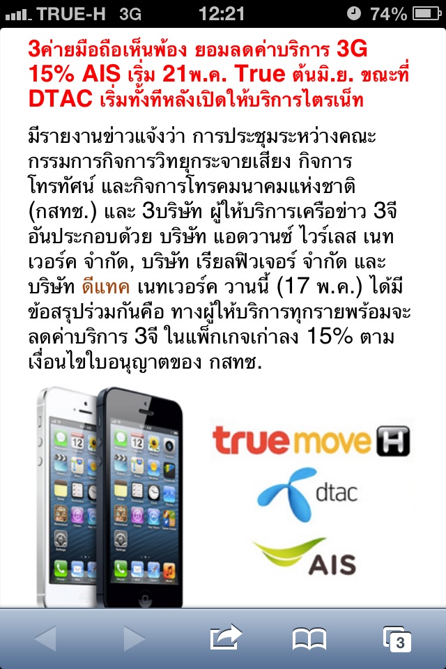 ที่มีข่าวว่าทั้ง 3 ค่ายได้ยอมรับการลดค่าบริการลง 15% ตามเงื่อนไขของ กสทช. แล้ว โดยทรูมูฟจะเริ่มลดวันที่ 1 มิ.ย 56 จริงใช่มั๊ยครับ