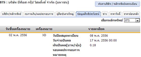 BTS เงินปันผลเข้าบัญชีกันยังครับ