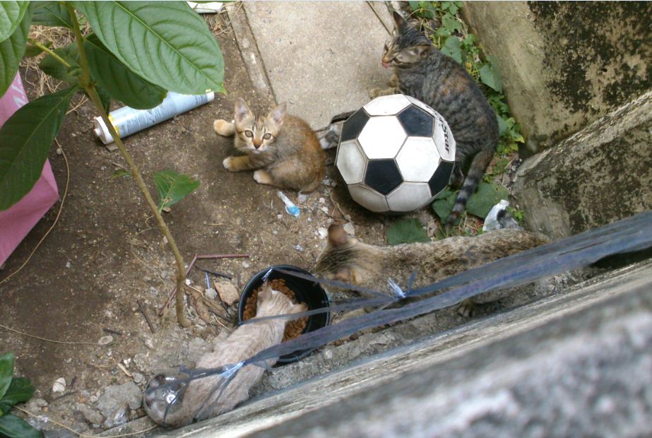 แม่มันมาคลอดไว้ที่บ้านร้างข้างบ้าน มีสามตัวครับ
