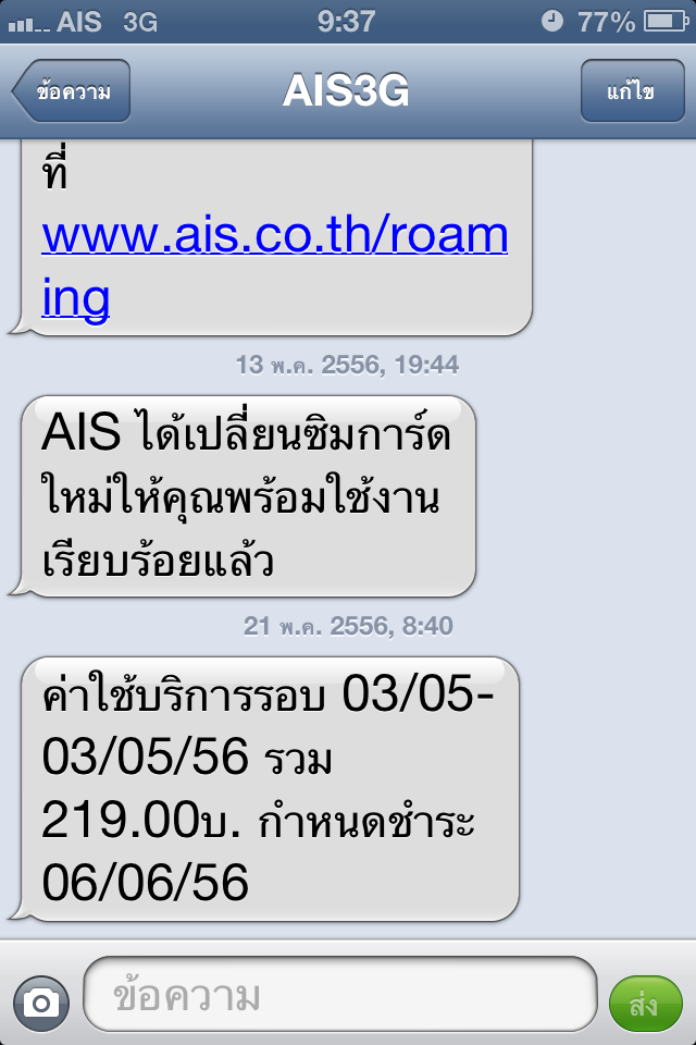 ย้ายค่ายจาก AIS ไป True เพื่อรับเครื่องฟรี แล้วได้ SMS จาก AIS ว่า free smartphone just continue being AIS3G. to get this privilege please dial *271 press 1(free) before noon 30/01/2016 12:00 เราอย่าก