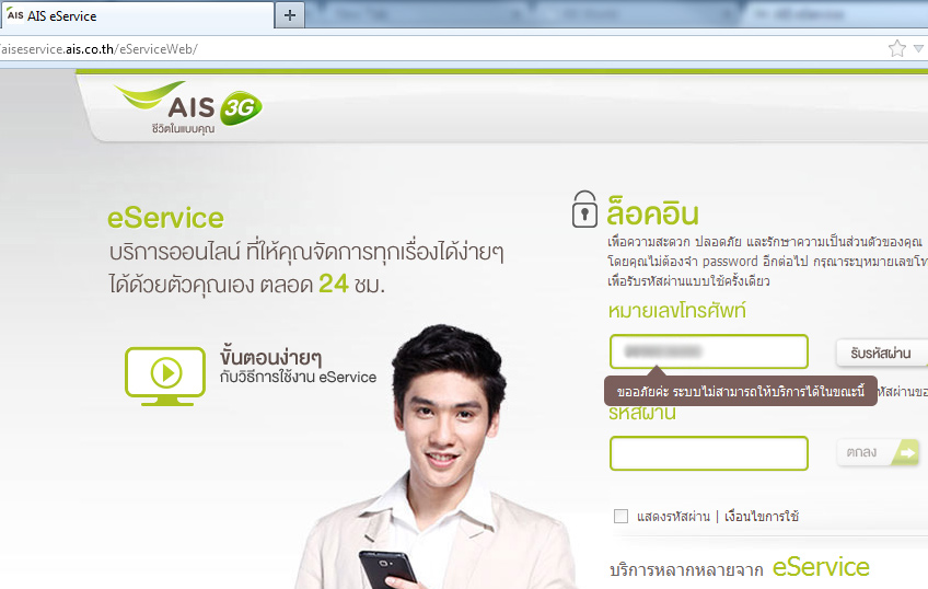 AIS E-Service ตอนนี้มันใช้ได้ปกติไหมครับ