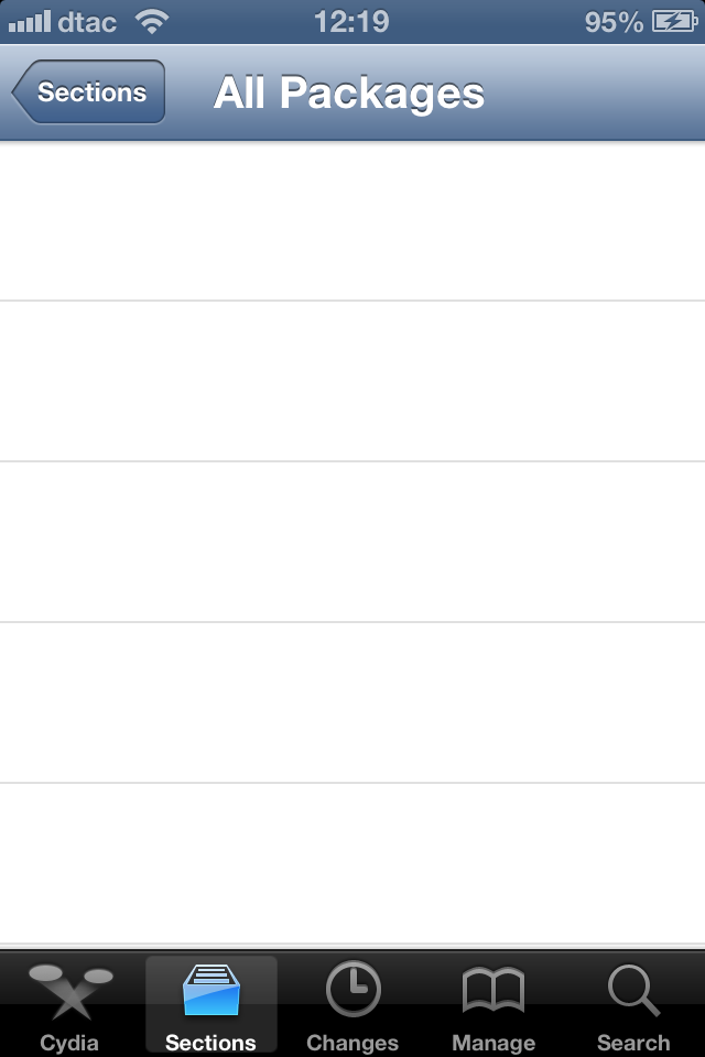 รูปแรกตอนเข้า Cydia ครับ ขึ้น Loading เราก็รอ เข้าใจว่ากำลังโหลด