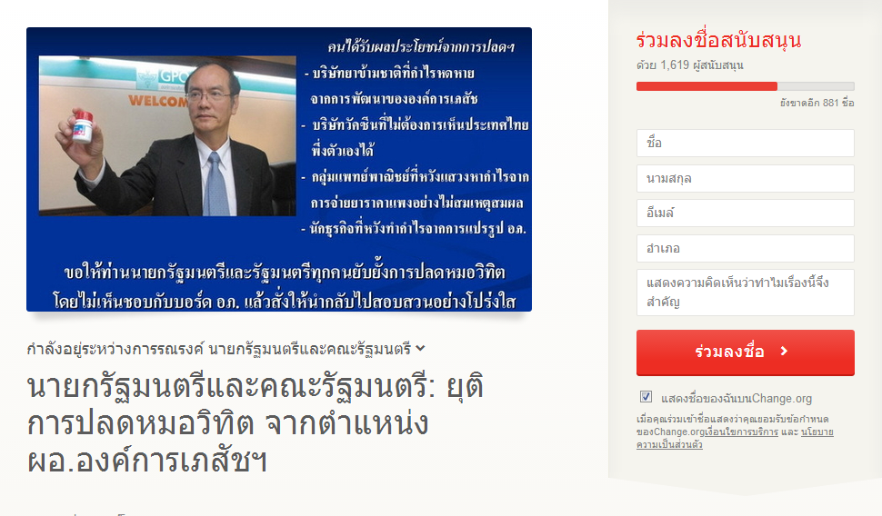 "หมอคนนี้คือคนที่ทำโครงการ 40 บาทรักษาทุกโรคที่ รพ.บ้านแพ้ว จนรัฐบาลคุณทักษิน COPY ไอเดียเป็น 30 บาทรักษาทุกโรค"....และ "หมอคนนี้คือคนที่ทำให้ราคายาหัวใจจากเม็ดล่ะ 70 บาท เหลือ 1 บาท" และราคายาอื่นๆถูกลง อย่างที่เรียกว่าขัดประโยชน์นายทุนยาอย่างมหาศาล........ดังนั้น Admin ขอเชิญชวนสมาชิกและแฟนคลับ ช่วยกันลงชื่อ "ยับยั้งการปลด**หมอวิทิต** กันครับ......http://goo.gl/lnySk <<< คลิก