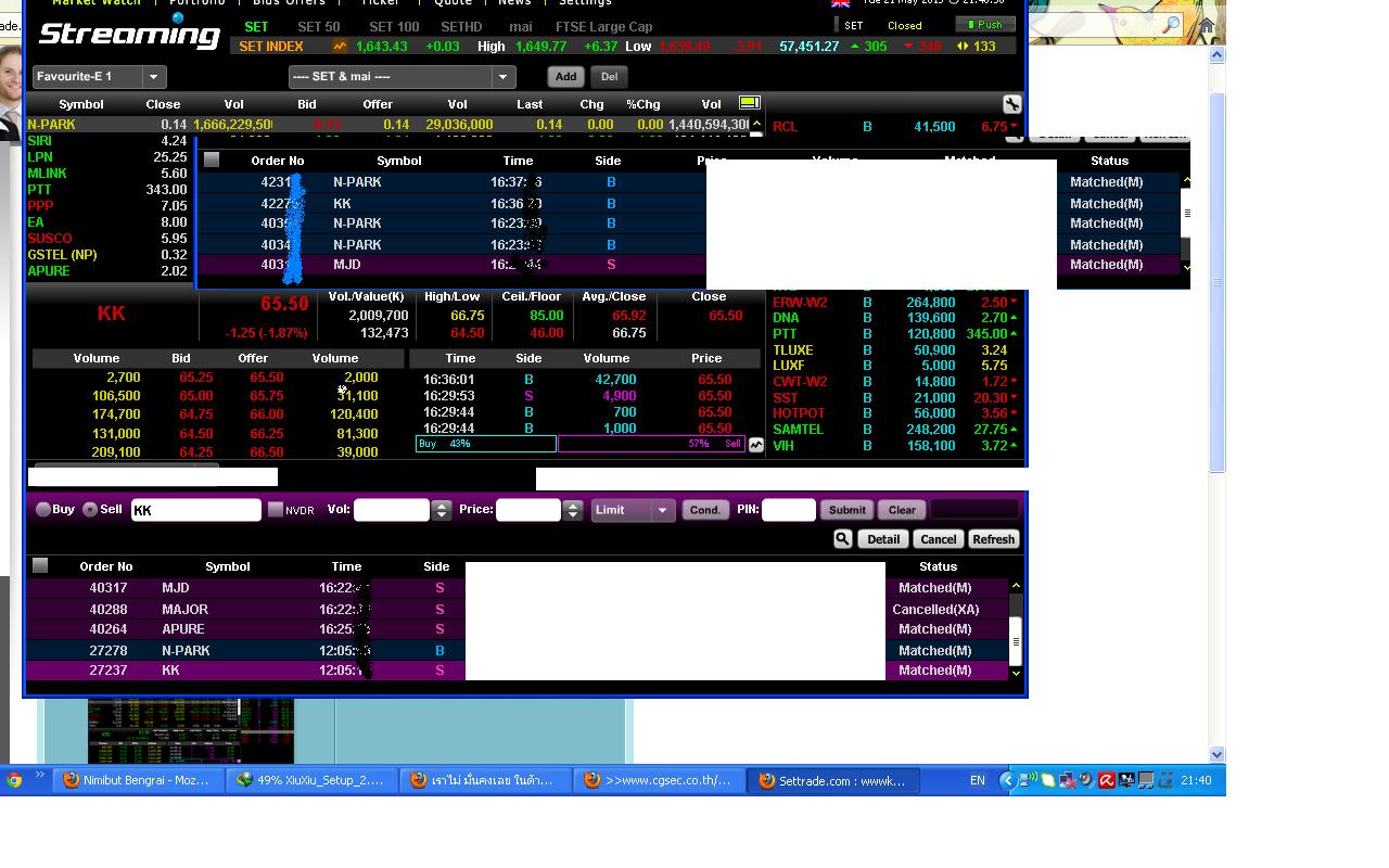 ฝนตกอากาศดีดี มากินข้าวกันครับ.. set ลบ. แต่หรั่งซื้อ.. พรุ่งนี้จะตบจูบ.. ตัวไหนมั้งง. n-park วันนี้ งอแงปิด 0.13 ... KK วันนี้ ทำท่าจะไหล. แต่ก็ตีกลับ ตอน atc เลย.. ... คิดว่า ไปต่อไหว มั้ยย.. KK