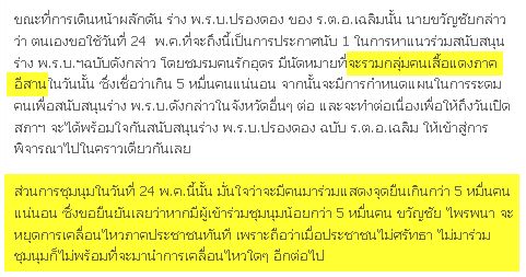 **นายเต้นเพิ่งเรียกระดมแดง แสนได้มา 2 หมื่น นายขวัญจะเรียกระดมอีก 5 หมื่นถ้าไม่ถึงเลิกเคลื่อนไหว (by แก้ม)