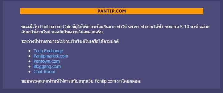 ใช้พันทิปกะโครมหลังๆเจอแบบนี้บ่อยครับ"ขณะนี้เว็บ Pantip.com-Cafe มีผู้ใช้บริการพร้อมกันมาก ทำให้ server ทำงานได้ช้า"