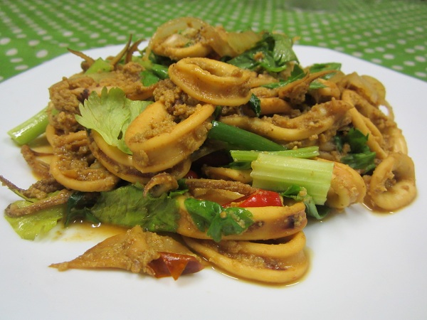 ปลาหมึกผัดผงกะหรี่ของคนไกลบ้าน
