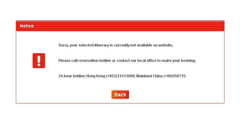 เดี๋ยวนี้ จองตั๋วผ่านเว็บ Hongkongairline ไม่ได้แล้วหรอ