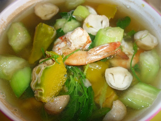 เมนูจากสวนหลังร้าน(เมื่อวาน).... แกงเลียงกุ้งสดใบตำลึงค่ะ