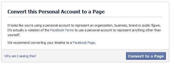 facebook ขึ้นว่า "Convert this Personal Account to a Page" แก้ยังไง