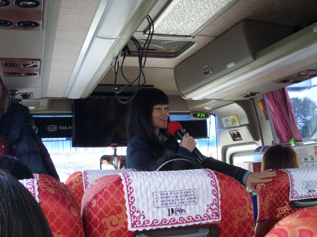 เดินทางถึงสนามบินอินชอน ประเทศเกาหลีใต้ เวลา 7.30 พี่นมสดนัดแนะวิธิการผ่านตม. และก็ที่รับกระเป๋า ตอนจะผ่านตม.แอบตื่นเต้นอยู่เหมือนกันกลัวไม่ผ่าน พอถึงคิวเราก็ยื่นพาสปอร์ตแล้วก็แนบใบเข้าประเทศให้ไปละ เจ้าหน้าที่ดันมาถามว่าใบนั้นอยู่ไหน ไอ้เราก็งง เพราะว่าก็ใส่ไปกับพาสปอร์ตแล้ว แต่นางดันหาไม่เจอ แถมนางพูดภาษาอังกฤษที่ดิชั้นไม่สามารถเข้าใจได้ ก็เลยเปิดพาสปอร์ตว่านี่ไง ทำไมหาไม่เจอยะ ชั้นแนบให้แล้ว หน้านางก็ไม่รับแขกเอาซะเล้ยยย แต่สุดท้ายก็ผ่านมาได้ ไม่ได้ขอดูเอกสารอะไรเพิ่มเติมเลย จากนั้นก็ไปเอากระเป๋า ประมาณ9.00ออกมาข้างนอกมานั่งรอคนที่โดนเรียกเข้าห้อง เห็นว่าเป็นคนที่จะหนีมาทำงานที่นี่มี 3 คน โดนเรียกเก็บค่านายหน้าไปตั้ง80000บาท พวกนี้เขาใช้วิธีมากับทัวร์แล้วก็แยกตัวไปอย่างเงียบๆ เพราะค่าทัวร์ถูกกว่าซื้อตั๋วเองหนิ 3คนนั้นก็ยืนยันว่าไม่ไปกับทัวร์รอคนมารับ ที่เหลือก็มาขึ้นรถบัส สรุปว่ามีทั้งหมด 34 ชีวิตที่ร่วมโปรแกรมนี้ มีแต่ลุงๆป้าๆทั้งนั้นเลย อากาศเช้านี้อึมครึมมาก มีละอองฝนหน่อยๆ เพราะว่าเมื่อคืนฝนตก พอขึ้นรถปั๊บก็แนะนำตัวไกด์ มีพี่เบนนี่ เป็นคนไทยที่แต่งงานกับสามีคนเกาหลี อยู่เกาหลีมา13ปีแล้ว มีลูกสาว1คน อีกคนเป็นคนเกาหลีชื่อจิน เป็นผู้ช่วยคอยยกกระเป๋า ถ่ายรูป เติมอาหาร และคนขับรถชื่อ Mr.Lee เราก็ต้องทำการทักทายคนขับรถทุกเช้า เป็นการนับถืออาวุโสกันด้วยคำว่า "กิสนิม อันยองฮาเซโย" ทุกคนนะจ๊ะ ว่าแล้วพี่เบนก็เริ่มเล่าเรื่องแรงงานที่หนีมาทำงานที่เกาหลีในระหว่างทางที่เราไปที่จ.คังวอนโด ที่แรกก็คือหมู่บ้าน