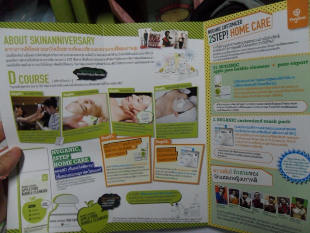 Skin Anniversary ที่นี่จะมี Teddy Bear ที่แต่งตัวเป็นดาราเกาหลี แล้วก็มีผนังถ่ายรูป3Dได้ เค้าให้เราไปตรวจสภาพผิวหน้าก่อนที่จะได้รับมาส์กที่เหมาะกับผิวตัวเอง ของเราได้A3 คือต้องเพิ่ม Whitening ส่วนเพื่อนได้C1ต้องเพิ่มความชุ่มชื้น ทุกคนไปนอนเรียงกันบนเตียง ให้พนักงานเช็ดหน้า แล้วก็นวดหน้า ตอนที่นวดหน้าเรารู้สึกว่าทำไมพนักงานมันมือหนักจังวะ หรือว่าต้องขนาดนี้อยู่แล้ว แต่ก็คิดว่าถ้าคนทำดั้งมา ดั้งไม่เบี้ยวหรือนี่จะนวดแรงไปไหม ก็นอนเอามาส์กแปะหน้าไป30นาที แอบเคลิ้มหลับไปเหมือนกัน สะดุ้งตื่นเพราะได้ยินเสียงคนกรน ตอนนอนรู้สึกว่าจะปิดแอร์ด้วยนะ มีเพลงให้ฟังเบาๆ ห้องเงียบมากจนได้ยินเสียงกรนชัดมากกก จากนั้นก็ไปฟังเขาอธิบายตัวเครื่องสำอางต่างๆ ราคาประมาณ35000วอนทั้งนั้น เขาบอกไม่ซื้อไม่เป็นไร ก็เลยไม่มีใครซื้อซักคน เซลคงเซ็งน่าดู