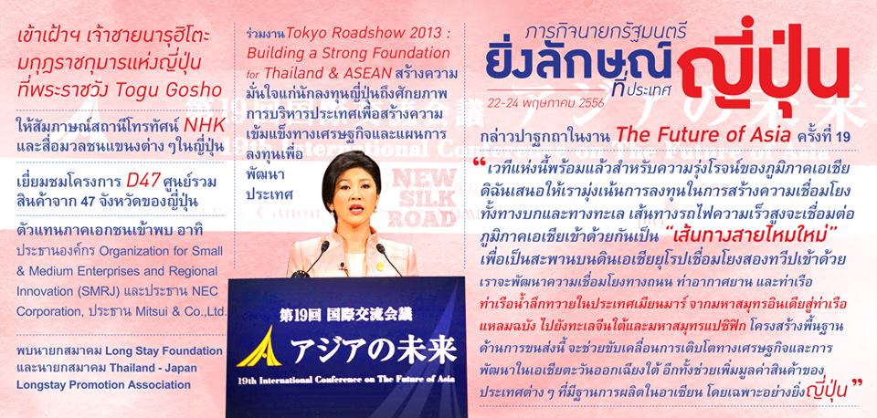 ภารกิจนายกรัฐมนตรียิ่งลักษณ์ ชินวัตร ที่ประเทศญี่ปุ่น ตั้งแต่วันที่ 22-24 พฤษภาคม 2556