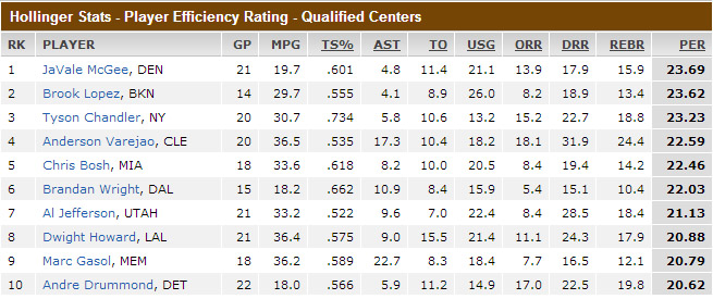 อย่างน้อยหนึ่งเคยมีค่า PER ดีที่สุดในตำแหน่งเซนเตอร์ มาแล้ว