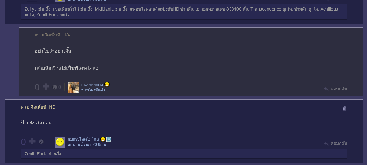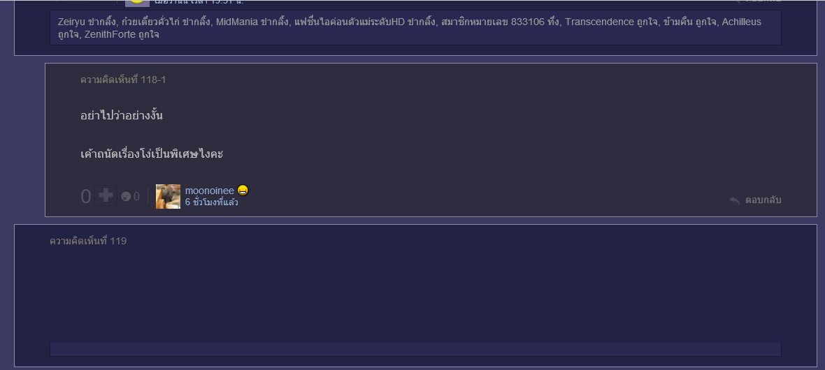 ดังรูป ผมกดอ่านความเห็นย่อยของ #118 แล้ว ปรากฎว่า ข้อความ ของ #119 หายไปเลย ชื่อผู้โพสต์ก็ไม่ปรากฎ