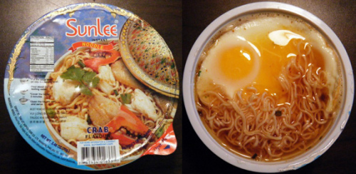 บะหมี่กึ่งสำเร็จรูปนี้ ภาพหน้าซองหม่นซีด