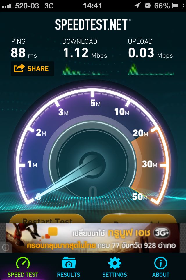 Dtac ทลายเน็ท ต้องขอบอกก่อนว่าเดิมที ไม่สามารถใช้งาน 3G ของ Dtac ได้้เลย แต่ถึงเกาะเป็น 3G ได้ก็เน่าฟุดๆ ใช้งานบนตึกชั้น 30 เหมือนโดนปล่อยเกาะเลยทีเดียว โทรก็เสียงขาดๆหายๆ แต่ตอนนี้ประทับใจฟุดๆ เล่นเน