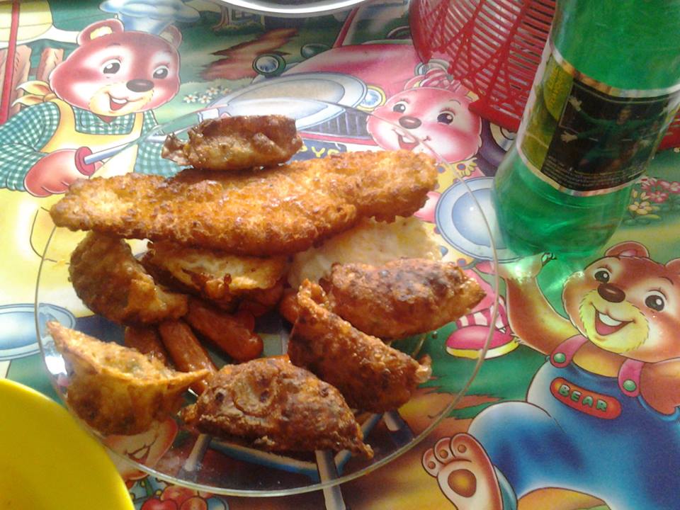 - ปลานิล +ปลาช่อน คลุกผงกะหรี่ทอด - เผือกทอด มันทอด ถั่วลิสงทอด ( ชุปแป้งทอด) - ไก่ตุ๋นมะนาวดอง หัวไช้ท้าว * พริกมะนาว น้ำปลา / น้ำจิ้มไก่ ตามชอบ* ทานกับข้าวสวยร้อนๆ&nbs