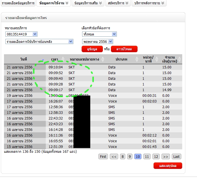 แต่ความผิดปกติ มีแค่ช่วงไม่กี่วัน แต่ขึ้นแทบวิต่ิิอวิ SKT ครั้งละ 15 บาท เกินมา 102 ครั้ง