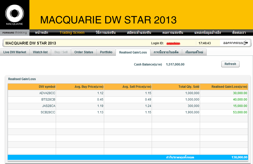 ขอคำชี้แนะหน่อยครับ มีใครลงแข่งเทรดหุ้นรายการ Macquarie thailand มั่งป่าวครับ