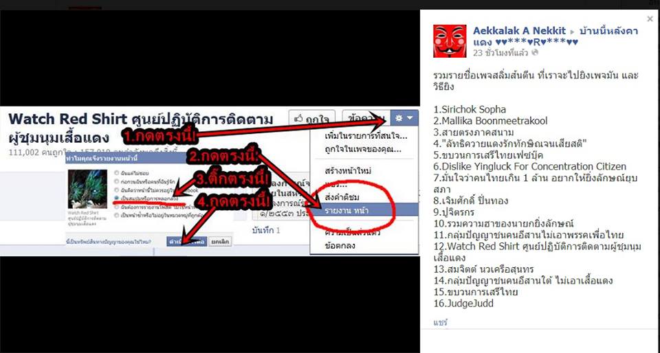สงสัยกลุ่มต่อต้านรัฐบาล และพลพรรคไม่ชอบเสื้อแดง