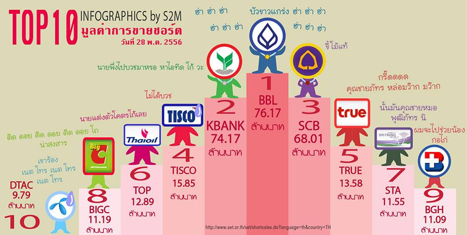 Top 10 มูลค่าการขายชอร์ต (Short Sell) วันที่ 28/3/2556