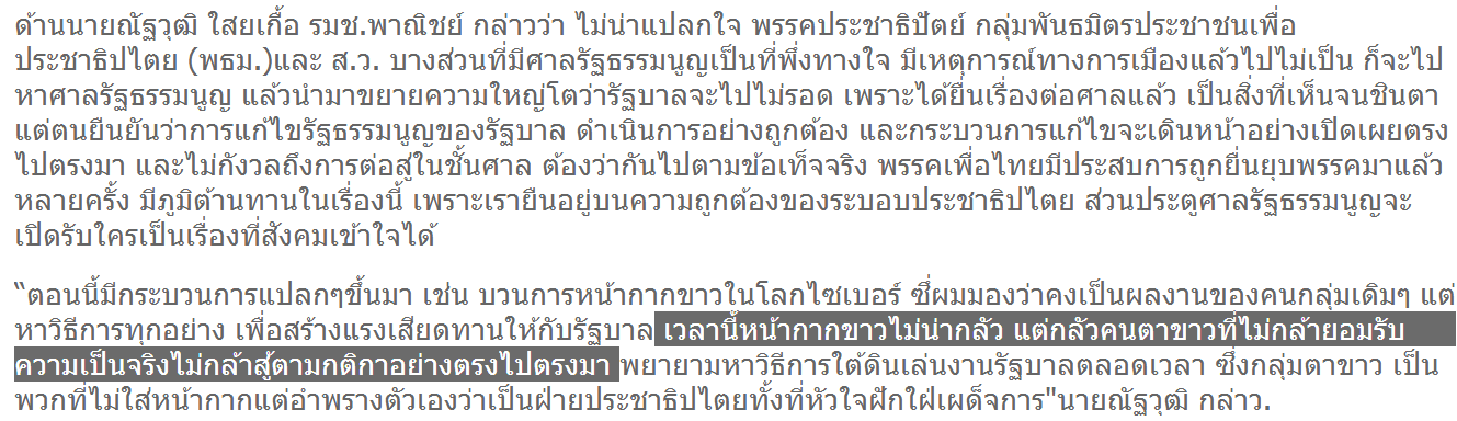 ไม่แปลกใจ พธม. ยื่นศาลระงับแก้ รธน. นายณัฐวุฒิ กล่าวถึงกรณีที่ กลุ่มพันธมิตรประชาชนเพื่อประชาธิปไตย (พธม.)ยืนหนังสือคัดค้านการแก้ไขรัฐธรรมนูญ มาตรา 68 ต่อศาลรัฐธรรมนูญว่า เป็นเรื่องที่ไม่แน่แปลกใจ