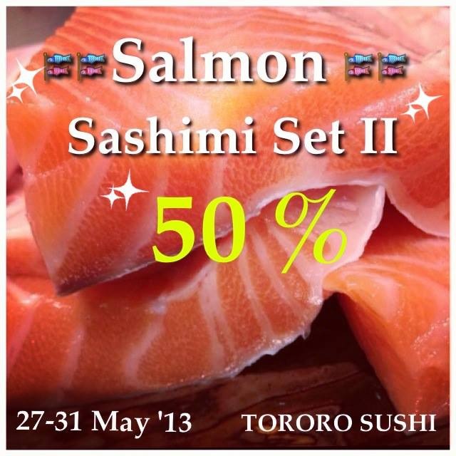 Tororo Sushi แซลมอน ซาซิมิ จานที่ 2 ลด 50% กับไปกินบุฟเฟ่ต์พวกคุโรดะ อันไหนคุ้มกว่าคะ