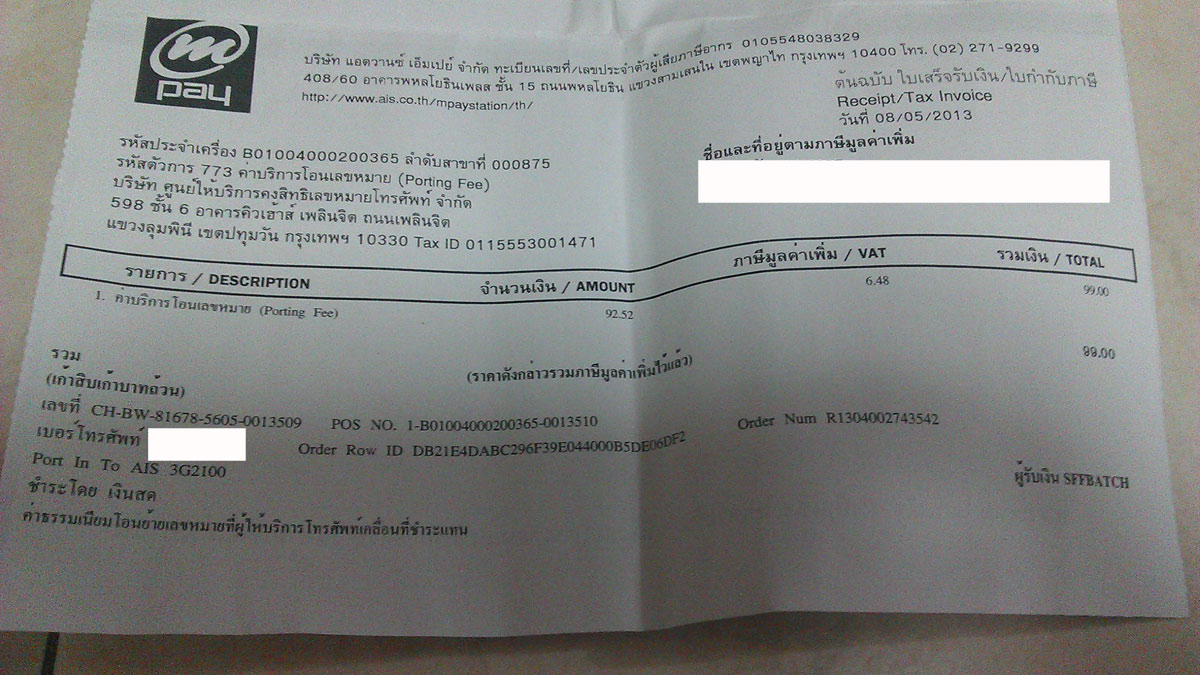 สอบถามเรื่องใบเสร็จ จาก AIS หน่อยครับ CC มาช่วยตอบด้วยนะครับ