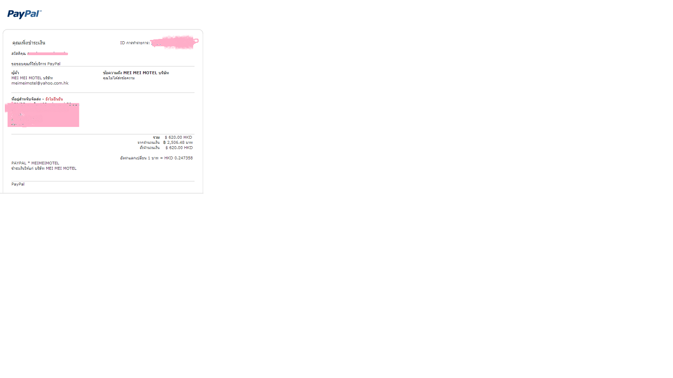 ใบเสร็จpaypal อันไหนหรอคะที่ใช้ยืนยันในการเข้าพัก
