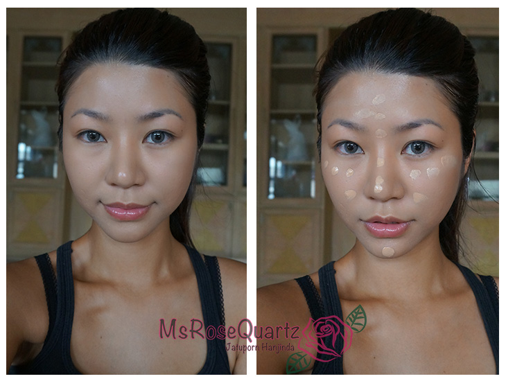 -ใช้รองพื้นสีขาวกว่าลงตามจุดต่าง ๆ ทีเราต้องการทำไฮไลท์