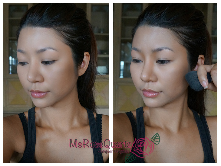 -ใช้สีแรกจาก Beautilicious Have-It-All ทำเฉดดิ้งตรงกรอบหน้า เว้นหน้าผาก อย่าลืมดั้งด้วยนะ