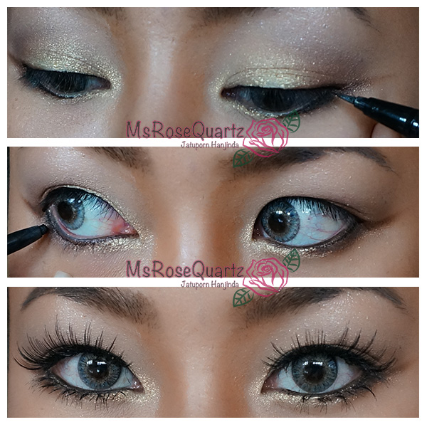 - ดัดขนตาปัดมาสคาร่า แล้วติดขนตาทั้งบนและล่าง (ขนตาล่างติดข้างงละ 5 ช่อค่ะ)