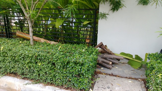 ท่านรปภ ได้มาจัดการเรียกให้รถขยะมาเก็บไป แต่ว่ามีบางส่วนเช่นต้นกล้วยเอาไปไม่ได้ แล้วมันก็เริ่มผุ เริ่มเน่าอยู่ข้างบ้านผม