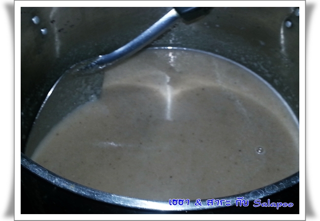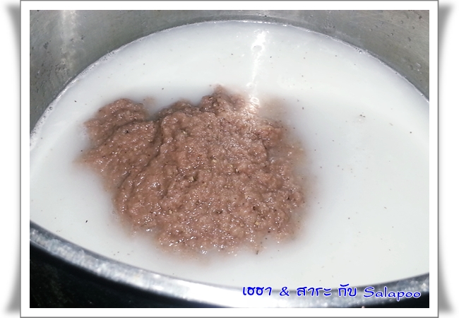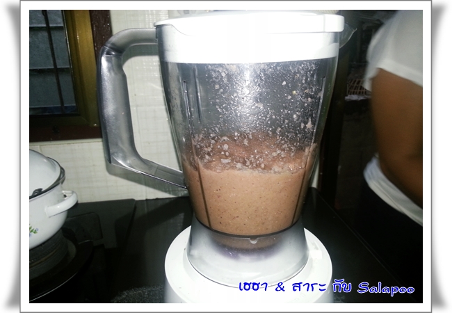 เอาน้ำพริกที่ปั่นไว้ เทใส่ลงไป