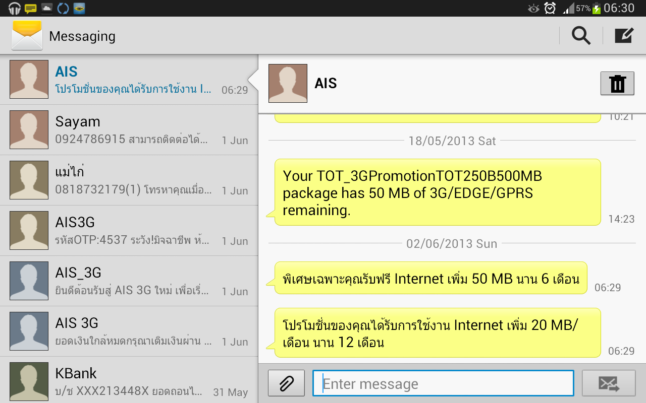 วันนี้มีเจ้าหน้าที่ติดมาเรื่องการเปลี่ยนโปรโมชั่น จาก 30/10 MB ราคา 440 บาท เป็น 50/20 MB ราคา 480 บาท ก็ตอบตกลง แต่ซักพัก SMS เข้ามา ตามภาพเลยครับ กลายเป็นสมัครแพคเก็จ 50/20 MB 599 บาท แบบนี้ได้ย้าย