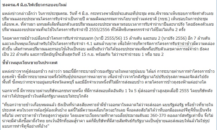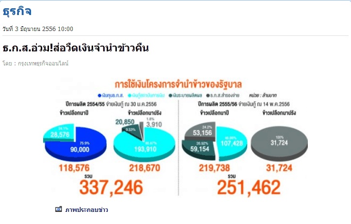 สื่อยักษ์ใหญ่ที่สุดในวงการเศรษฐกิจของโลก วอลล์สตรีท เจอร์นัล เสนอบทความพิเศษวิจารณ์ โครงการจำนำข้าวไทย อีกครั้งต่อเนื่อง 2 สัปดาห์ หัวข้อ “ความย่อยยับของโครงการอุดหนุนข้าวไทย”............