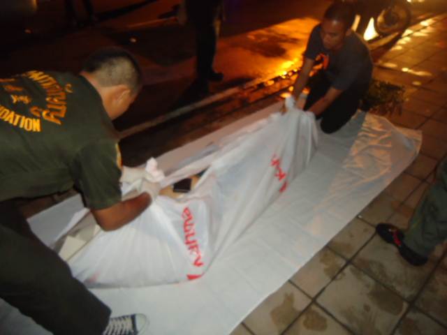 จากนั้นแพทย์จากศิริราช ก็ถึงที่เกิดเหตุ ชันสูตรเบื้องต้น แล้วห่อตามที่เราเคยเห็นกัน