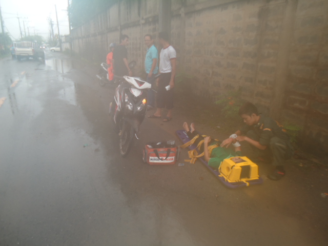 ยังไม่หมดครับ เวลาประมาณ 6 หกโมงเช้า วิทยุแจ้ง ขอรถรับผู้บาดเจ็บ ในเทียนทะเลซอย 7 ครับ เป็นรถกระบะ กับ มอไซค์ ชนกัน บาดเจ็บ หญิง 1 ราย ส่ง รพ.บางมด ไปถึง บางมดบอก มีสิทธิ์ รพ. สุขสวัสดิ์ ก็ย้ายกันต่อไปอีก