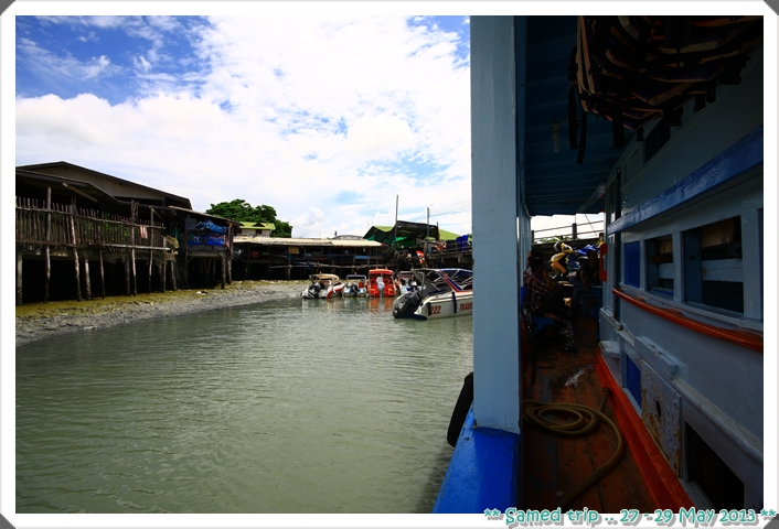 ท่าเรือมีสองท่า คือตรงผีเสื้อสมุทรที่หลังคาสีฟ้าๆนั่น กับท่าเรือที่ไม่มีหลังคาข้างๆนี่ เรามาลงตรงที่ไม่มีหลังคาค่ะ