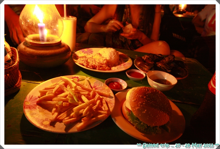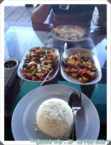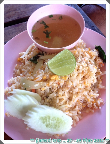 รสชาติใช้ได้ ราคาสำหรับในเกาะก็โอเคค่ะ จานละ 60 น้ำเปล่าฟรี .... มื้อนี้รวม 120 บาท
